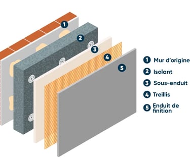 Économies d'énergie : En enveloppant complètement le bâtiment, l'ITE réduit les ponts thermiques et permet des économies d'énergie significatives.