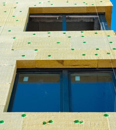 Pose de l'Isolant : Nous utilisons des panneaux isolants de haute qualité pour envelopper votre bâtiment, réduisant ainsi les pertes de chaleur et améliorant son efficacité énergétique.